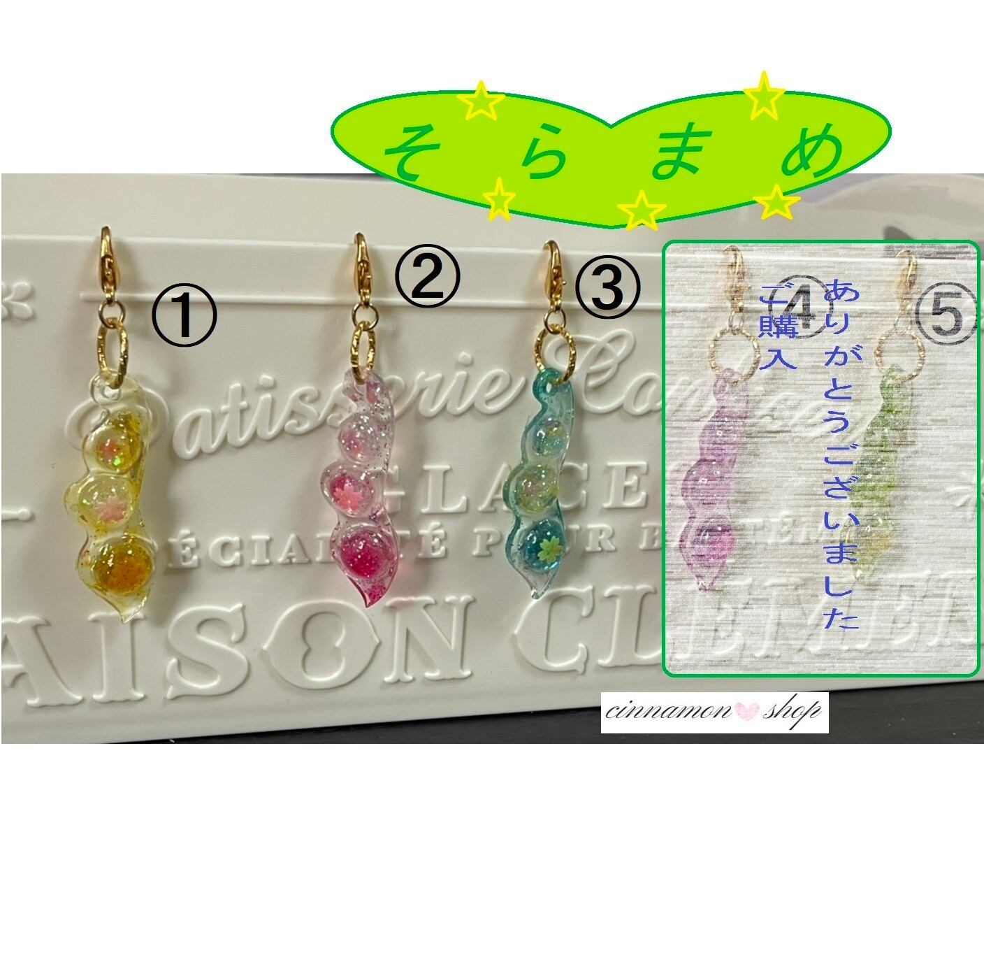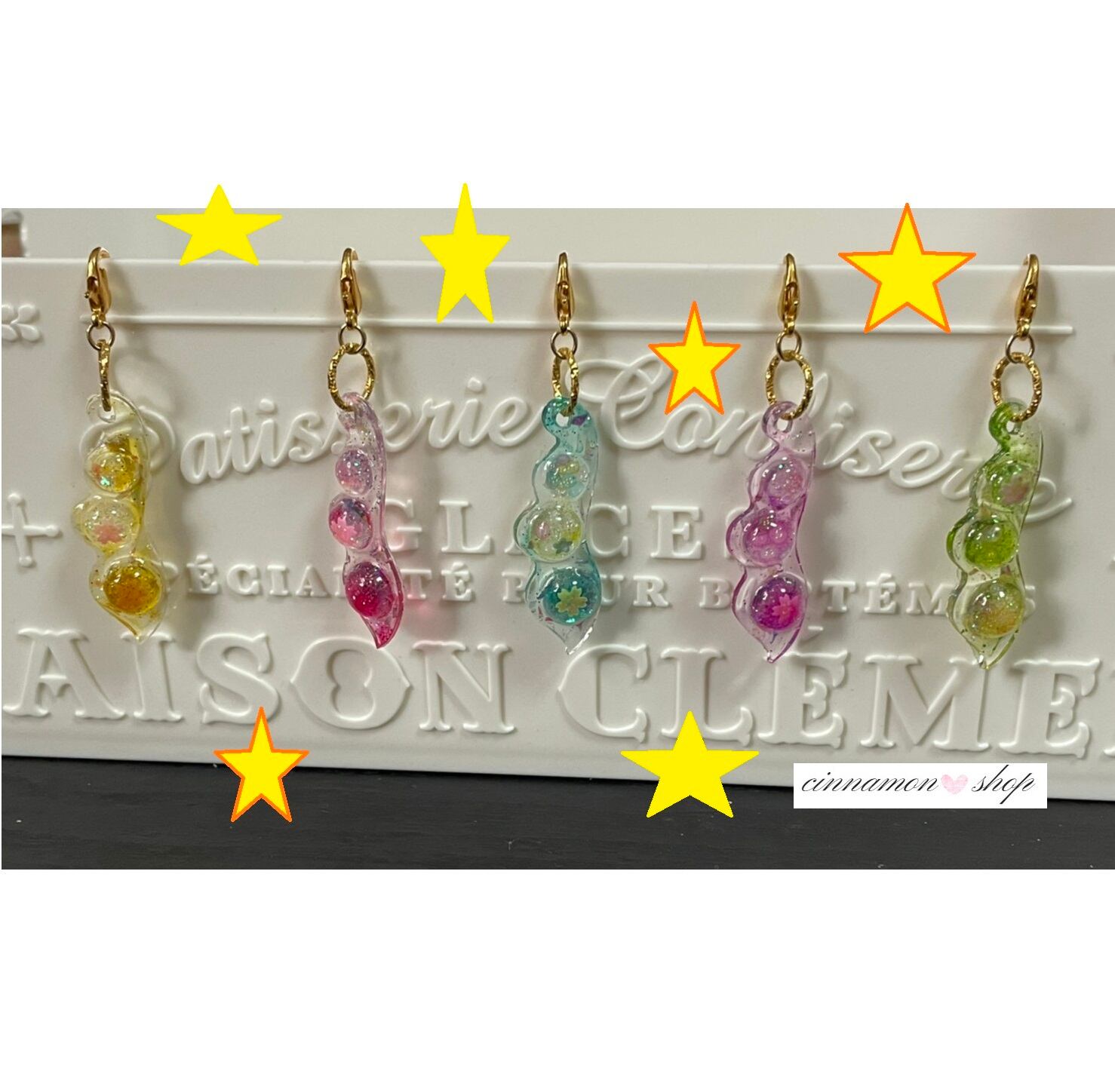 レジンを使用したキラキラした、春らしく桜の入った可愛いソラマメのマスクチャームを制作しました(๑╹ω╹๑ )