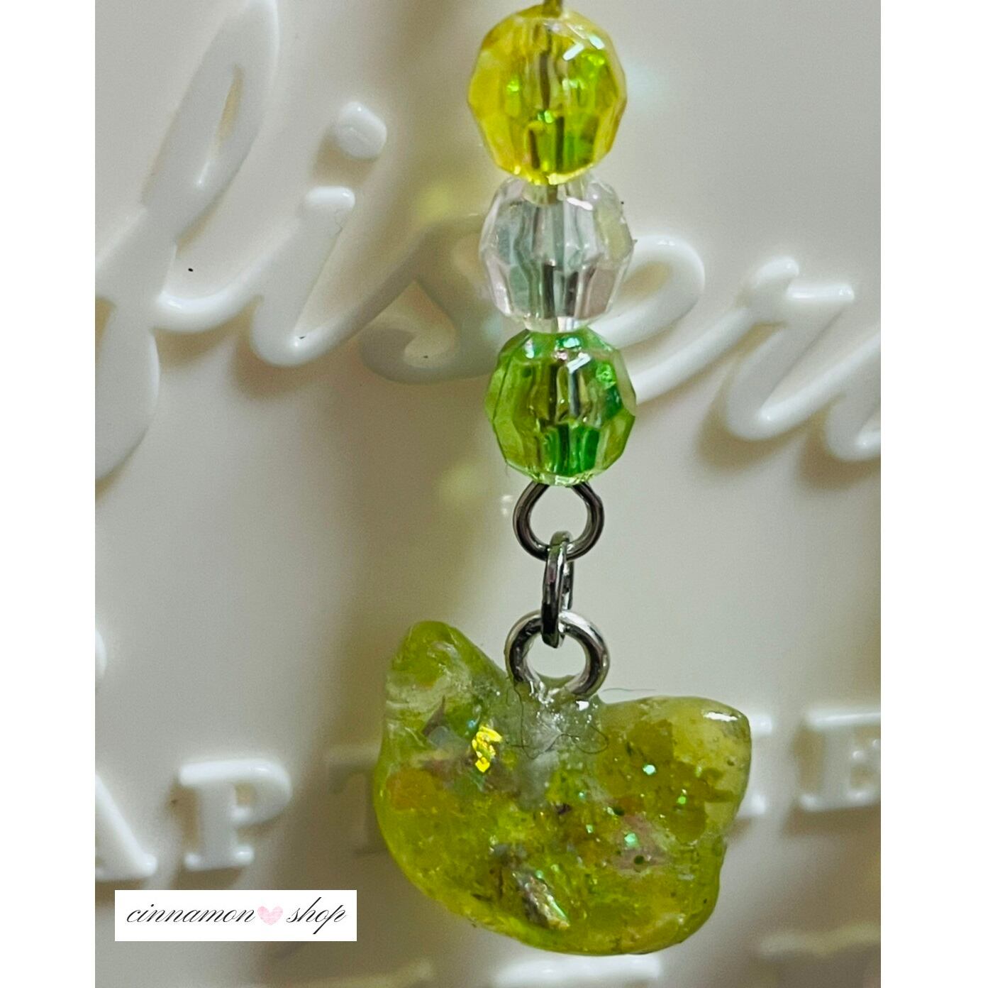 レジンを使用したキラキラした、春らしく桜の入った可愛い猫のマスクチャームを制作しました(๑╹ω╹๑ )