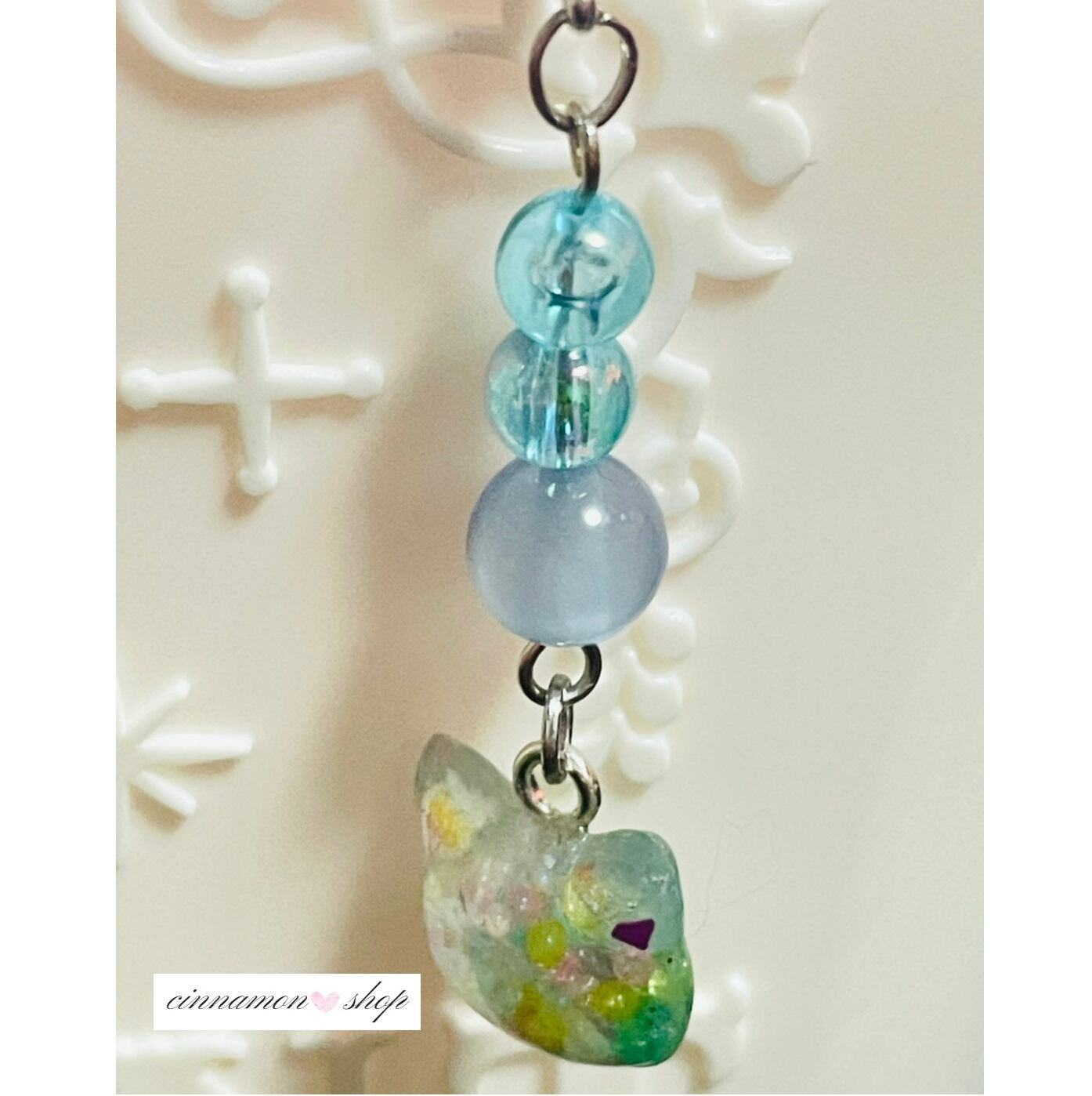 レジンを使用したキラキラした、春らしく桜の入った可愛い猫のマスクチャームと桜の入った可愛い音符♪のマスクチャームを制作しました(๑╹ω╹๑ )