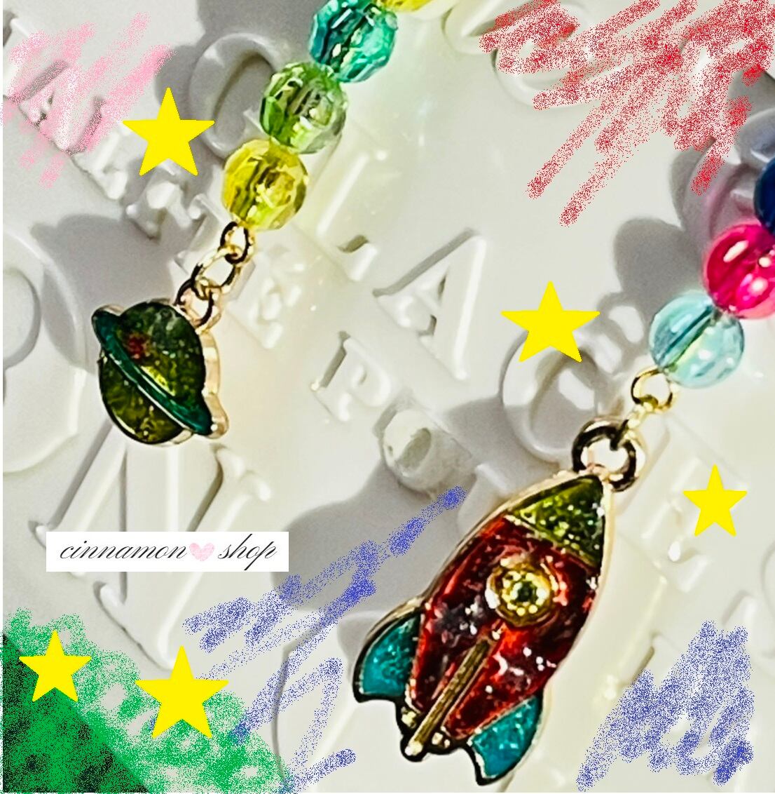 レジンとビーズを使った桜の入った⭐️宇宙イメージのマスクチャームを制作しました(*^ω^*)