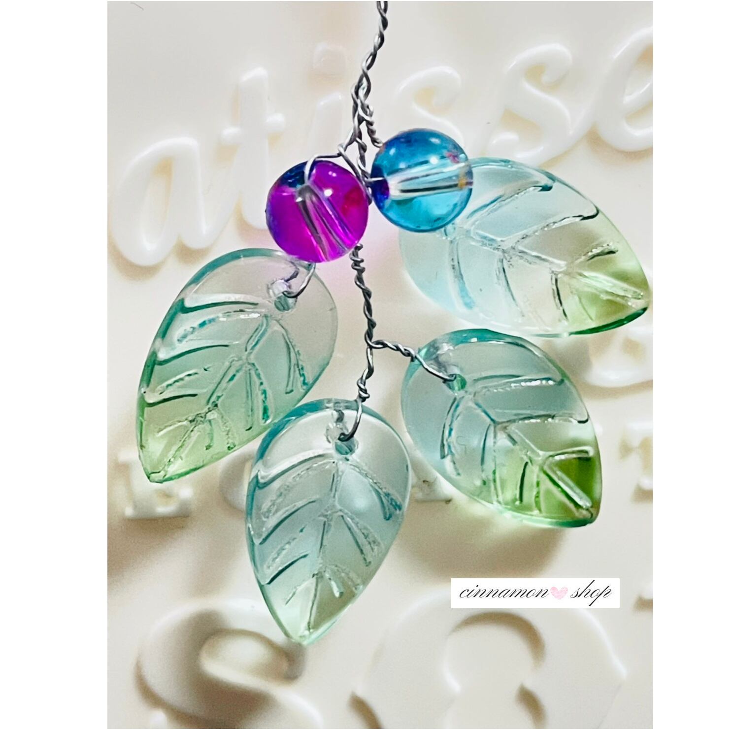ワイヤーとビーズを使った綺麗な小枝の雰囲気のマスクチャームです(^O^)