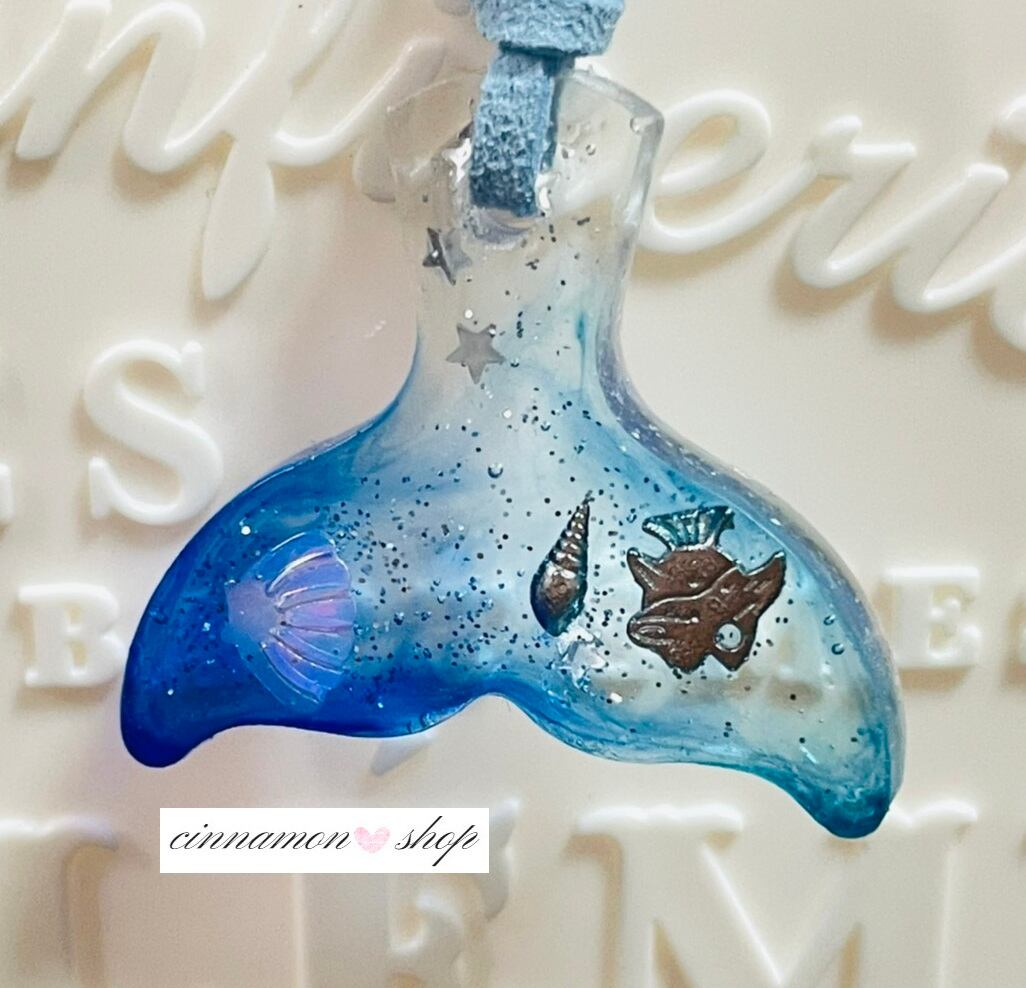 涼しげな、貝殻と魚が入ってるクジラの尻尾のおしゃれなネックレスになります(^○^)